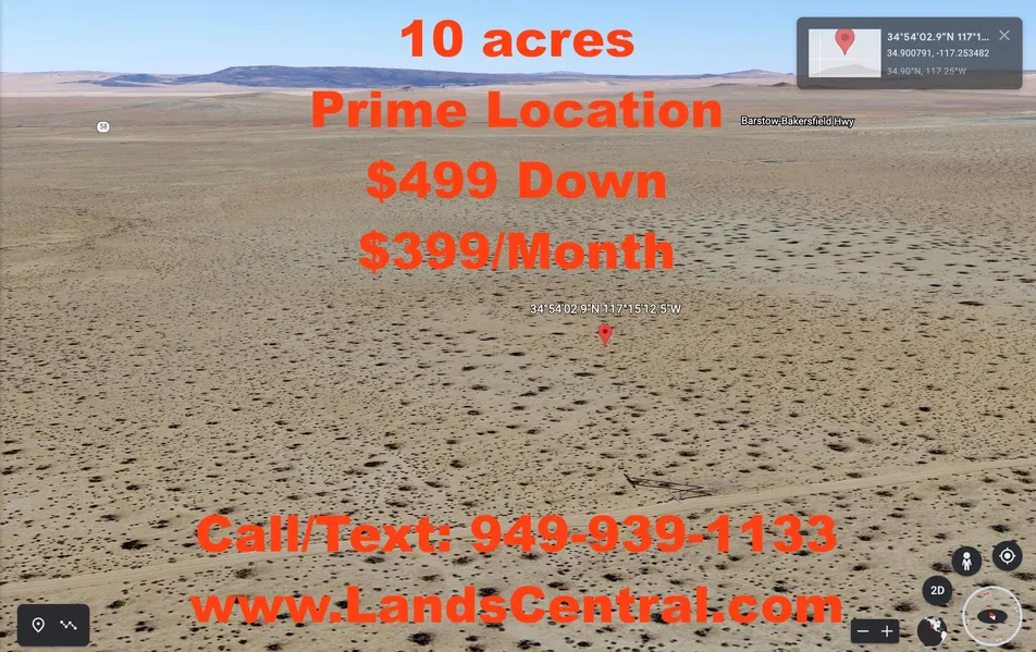 You can type these coordinates in Google Maps to find the land: 34.9007908584109, -117.253481927567