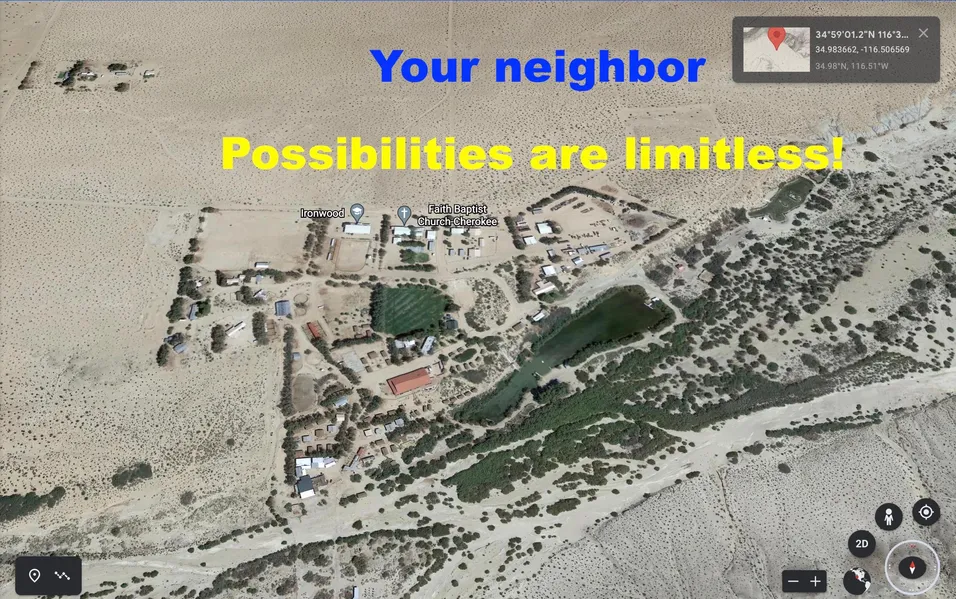 You can type these coordinates in Google Maps to find the land: 34.9836618794891, -116.506568916083