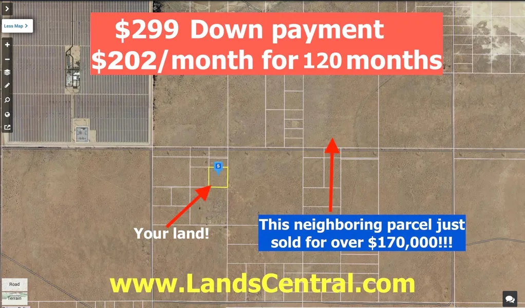 You can type these coordinates in Google Maps to find the land: 34.9930151003993, -117.287293352041