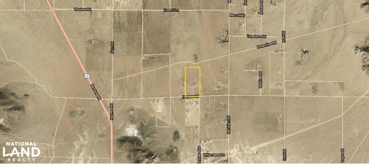 Lat/Long - 34.547663,-116.933085 From Victorville - head southeast on CA-18/D St Toward 8th St - 18.9 mi, Turn left onto Rabbit Springs Rd - 2.3 mi, Turn left onto Kendal Rd - 151 ft, Turn right onto Rabbit Springs Rd - 1.2 mi, Turn left onto CA-247 N - 5.8 mi, Keep right to continue on Fern Rd - 0.2 mi, Turn right onto Haynes Rd - 0.7 mi to 33520 Haynes Rd