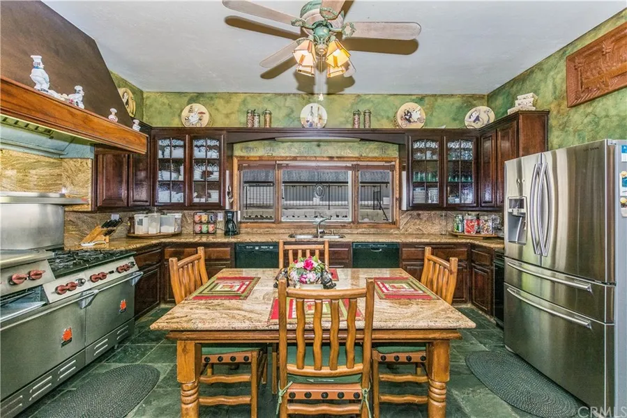 Truly an Estate Home! Situated on just under an acre of land, this mansion is 11,298 sq ft with 9 bedrooms, 8.5 bathrooms and a 6 car garage and your very own elevator. You will feel the old world charm as soon as you drive through the gated entrance and see the well-established trees and foliage. Located in the San Bernardino Mountains close to Mountain High ski resort, fishing, hiking, biking, camping, etc. Boasting an impressive wrap-around porch, you enter this striking Victorian through double doors into the grand foyer. The first floor includes a library, formal living room, formal dining room (easily seating 10), your very own saloon, and a gourmet kitchen with 6-burner wolf stove and flat top cooker. The main floor bedroom has a full bath and access to the sunroom/covered patio where you can entertain while watching the mountains and snow. The second floor includes a master suite...