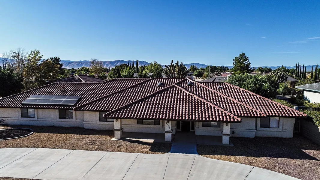 Well appointed home, upgraded with new materials and touches, Pool, and 2 car RV detached garage with a 3 car attached. This home invites you to step in with hardwood floors and warm colors, formal living room and formal dining room, with large family room as well. Expansive kitchen with brick accents around the stove area, breakfast bar and nook with exit to the backyard for entertaining. Off the kitchen is a Jr. master with a separate bath and the laundry room as well with exit to backyard. Fully finished garage with cabinets and extra storage. The split floor plan accommodates 3 more bedrooms, a hall bath, and including the master bedroom with bath en suite. Al three of these bedrooms have walk in closets. Pool is manificent and heated with solar. Gates lead to the RV garage, on side is standard height the other is 12 foot to get your RV out of the desert sun. Fully finished inside wi...