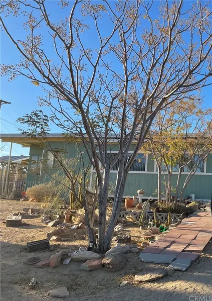 Panoramic Views of Joshua Tree and the Joshua Tree National Park can be seen from the front of the house and kitchen window. Amazing and Unique 1435 SQ FT home. It is a 2 bedroom and 2 bath single story home with a two car garage attached overlooking beautiful Joshua Tree. Great open floor plan with a rock fireplace with insert and blower, open beam ceilings, has a basement, indoor laundry, RV parking and lots of room for toys, this property is on double lots of 14400 SF (120x120) completely fenced in yard. It is a MUST SEE and won't last long. This home will be SOLD fast and AS IS.