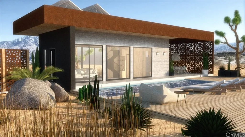 Enjoy your newly constructed home, soon to be built by SBR Builders located on over 2 acres in Joshua Tree with breathtaking panoramic views of the desert. The Indigo House Luxe Edition is an 850 sq.ft. 1 bedroom 2 bath home with premium interior finishes and smart home technology. Built to preserve the desert's beauty and environment, the home features solar panels, a live roof, irrigation system and drought tolerant landscaping. Enjoy the sunrise and sunset from your new pool, hot tub and outdoor fireplace. This desert getaway is nestled in the middle of the desert but conveniently located near downtown Joshua Tree. Additional options include a casita,outdoor kitchen, garage and carport. This desert oasis has easy access just off paved road