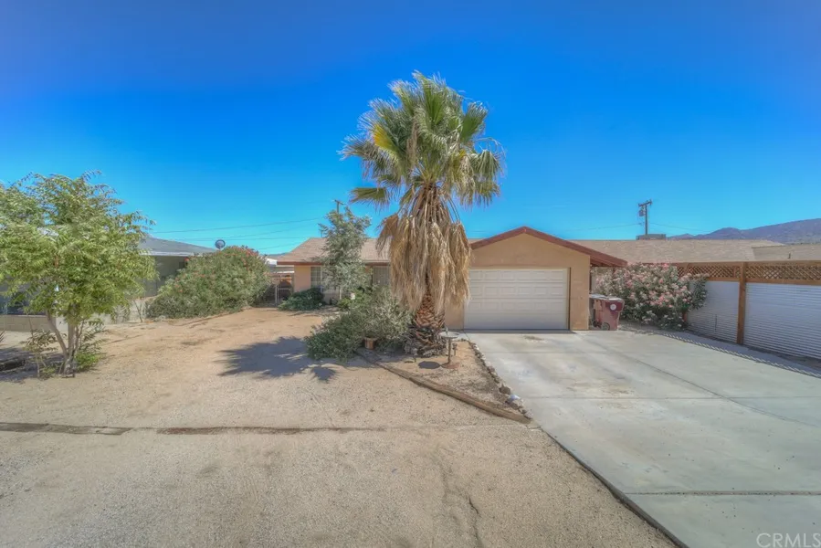 Take a look at this charming home located in the Village of Joshua Tree. Over 1100 sq ft of living space, newer flooring throughout the home, 3 bedrooms, 2 separate restrooms attached to the tub/shower room, and central air for those warm Desert Summers. This home sits on a generously sized lot, has no rear neighbors, with plenty of room for creating your own outdoor retreat just bring your imagination! Ease of access to local shopping and restaurants, just a few minutes to the main gate of the Joshua Tree National Park, and a 30 minute drive to 29 Palms Marine Base. If you are looking to find the perfect location in the Morongo Basin, don't miss your opportunity to call this place Home!