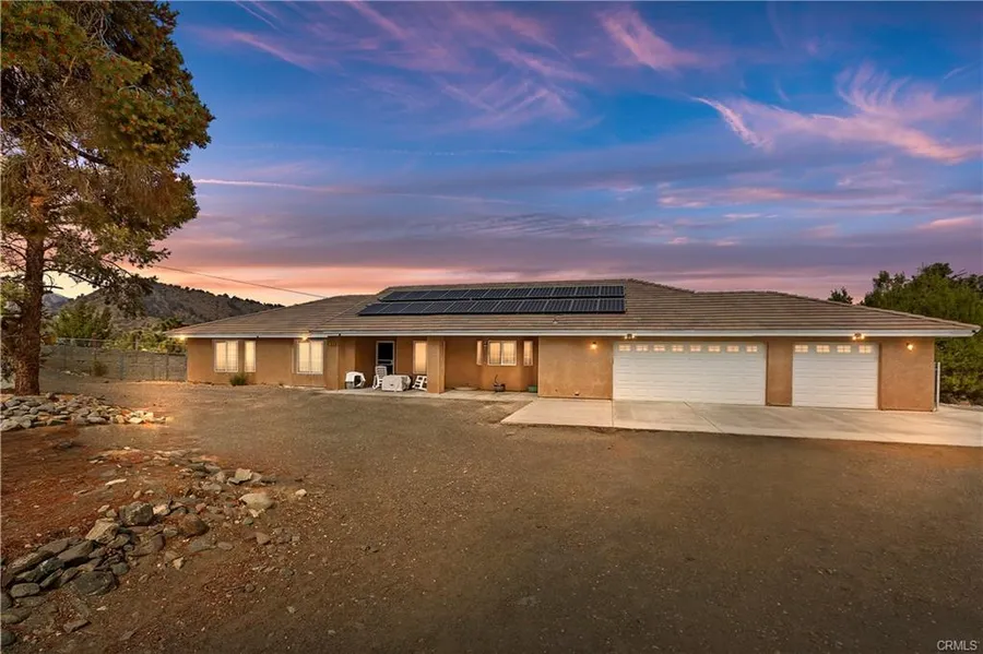 Absolutely pristine! This single story home offers one of the most phenomenal floor plans ever! An expansive great room with cozy wood burning stove and built in entertainment center opens to a spacious kitchen with wrap around breakfast bar and adjacent dining area. The kitchen is a dream, with beautiful white cabinetry, granite counters, garden kitchen window, plant shelves, tons of storage with all the modern pull outs and pots/pans drawers, stainless steel appliances, PLUS a spacious walk in pantry. An office with double doors is located directly off the living room. The master suite is located in its own wing, with a luxurious oval bath and oversize separate stone tiled shower and large walk in closet. The opposite wing of the home has a good sized bedroom with mirrored wardrobes, a 3/4 guest bath, and two more master sized bedrooms with walk closets and a jack and jill bath! Beautiful laminate wood flooring throughout, ceiling fans in all rooms, recessed lighting, and all SO immaculately maintained that it shows like a model home! the back covered patio stretches the entire length of the home for lots of outdoor enjoyment. Located on over 2 acres with spectacular sunset views, fully fenced front and back yards with rolling gate entry to 3 car garage. PLUS, fully paid off solar panels! Extremely desirable neighborhood just off Hwy 2 with hard to find county maintained road! A rare opportunity for country living in luxury!