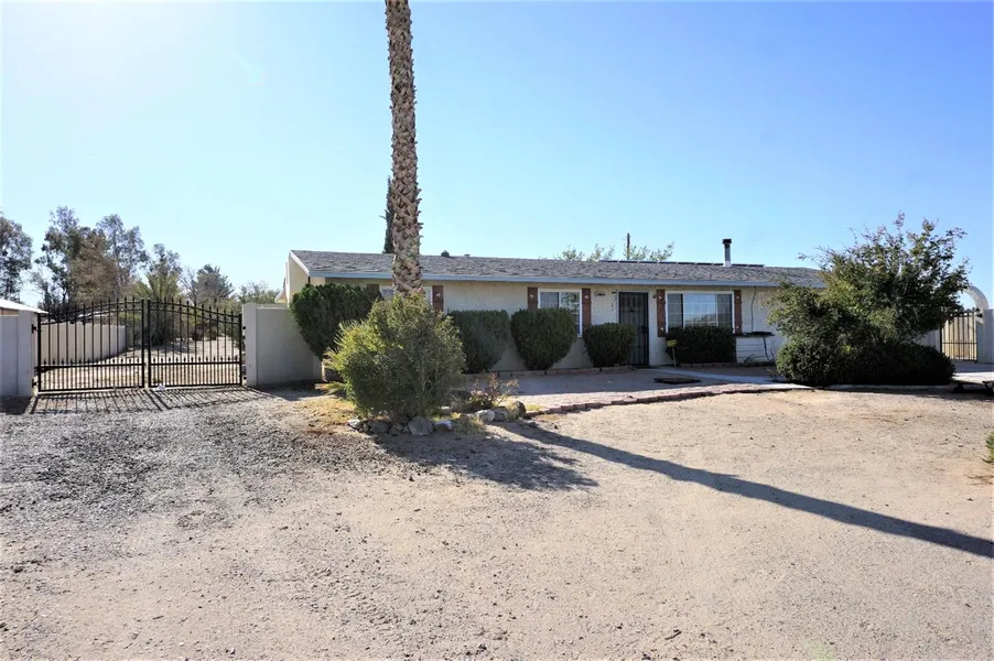 Great three bedroom two bath home for sale a few miles outside of Barstow. This well-maintained home sits on a 0.6 acre lot. There is tile flooring throughout the home. Radiant floor heat in the bedrooms. The owned (not leased) solar system provides plenty of electricity for the existing family. The swinging gates leading to the back yard are powered by a gate opening system opening to a rear lot providing ample space to build an over-sized garage and room for your RV as well. More pictures to come!