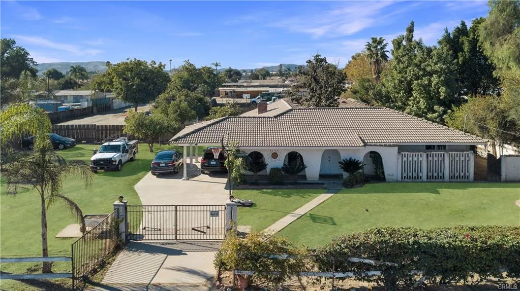 Great Equestrian Property or Developers Dream. Spanish Style Horse Ranch on 2.33 acres of level, flat land with stable, tack room, fenced arena, hay barn, cross fencing, corrals, pasture, wash rack, 2" water line from meter, fruit trees and lots of room for horses and parking. Home features: 3BD / 2BA, Great Room with Fireplace (25' x 17 ' currently being used as 2 additional rooms), Formal Dining Room, Large Upgraded Island Kitchen with Granite Counters, Stainless Steel Appliances, Dining Room with sitting area, custom tile, Master Bedroom, Upgraded Master Bath with tile flooring, granite counter top, separate shower and large soaking tub, Upgraded 2nd Bath with granite counter, tile flooring, Laundry Room, Detached oversized 2-Car Garage with carport in the process for legal 2 unit conversion with plans and paid Building/Planning Fees by current owner. Set of plans, electronic plans all included with sale.