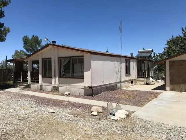 Mobile home - not on a permanent foundation - in disrepair - possibly a tear down. However, this mobile homes sits on almost 2.25 acres located in a PRIME location in Phelan - super close to schools, shops and services. A very short dirt road will lead you to this fully fenced property featuring beautiful mountain/valley/desert views. Also, this home has a nice sized, detached two car garage. Property comes with 1 water right. Used to have an inground pool.