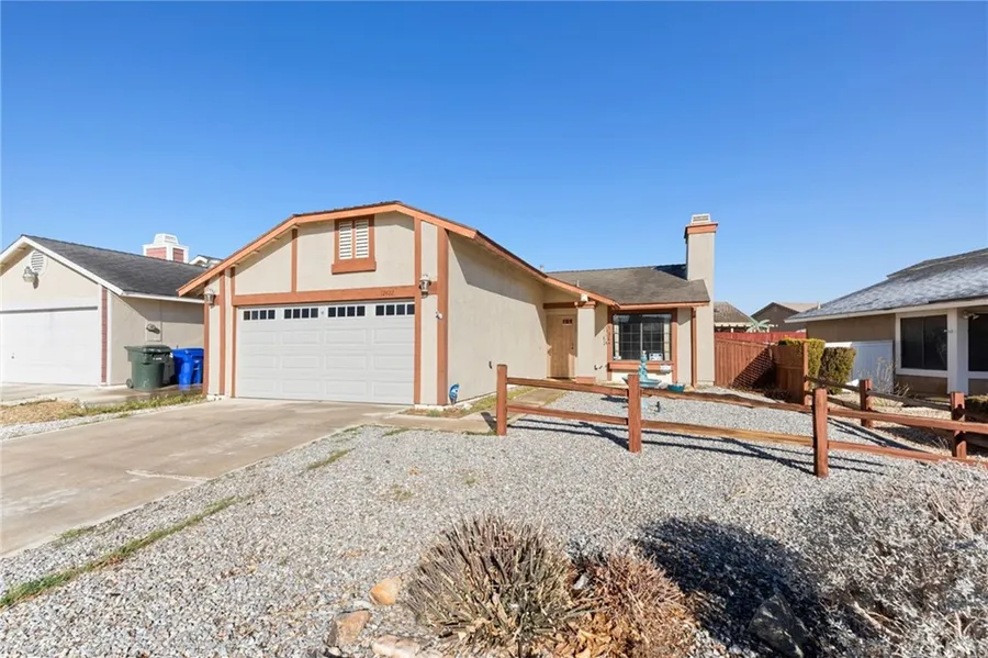 Welcome to this phenomenal single-story home located in a 55+ community. This home features 2 bedrooms, 2 bathrooms, an enclosed patio, a fireplace, and an original kitchen. As you walk into your new home you'll immediately notice the large living room with a beautiful fireplace and a view of the quiet neighborhood. Right past the living room the dining room area will manifest and show off its large space to accommodate all your dining needs. The kitchen has a window to look outside while preparing dinner for the family and also has enough ceiling lighting to light up the whole kitchen. Heading to the first bedroom you'll notice the large closet space with a high ceiling and the restroom is attached to the bedroom as well. The bathroom is original and offers the full package with a shower with a bathtub and a large countertop for all your toiletries. Going to the master bedroom you'll notice the extra cabinets to place extra clothes or miscellaneous items and there's enough cabinet space to place any family pictures or prized possessions you might want to show off to your guest. The master bedroom features an extremely large closet with shelves built into the closet and has direct access to the patio for quick in and out access. The master also has a private restroom that has a full bathroom and a window to allow natural lighting into the room. Once you start heading to the garage you'll notice a room built to do your laundry. It has enough room for both your washer and dryer as well as built-in cabinets to place any extra clothes you might have. The garage is large enough for two cars or a car and a workstation. It also comes with extra shelves to place extra tools you might have and overhead storage space for items you might want to store and keep out of mind. Attached to the garage there is a walkway to go to the front or backyard which can be used for extra storage space or designed to meet your specific needs. The backyard has plenty of possibilities and offers enough space to fulfill both gardening and authentic designs. The possibilities are endless. This home is also conveniently located close to the 15 freeway, near the spring valley lake, a golf course, scandia amusement park, and close to the mall of victor valley for all your shopping needs. Don't miss out on your opportunity to own this wonderful home because this opportunity won't last long. Call me now for your own personal tour! (Click on the link for virtual tour) (roof pictures has snow)