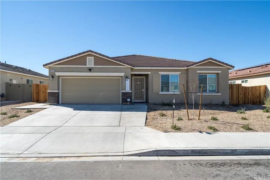 My love, stop the car now, this is the one! A beautiful new home awaits in the new Stone Briar community. No HOA fees BIG pool-sized lot, SOLAR PANELS INCLUDED! No Mello Roos and low 1.55% tax. The property is adjacent to Adelanto Marketplace, The Crossroads at 395, Adelanto Dog Park, John Mgrdichian Park, Richardson Park. This property has a wide entry hallway, high ceilings, an open-concept kitchen to dining and living room. The kitchen features a beautiful island and pantry with plenty of cabinetry for all your household needs. The big yard space is a blank slate so let your imagination run wild! At this price if you sleep on it, you won't sleep in it!