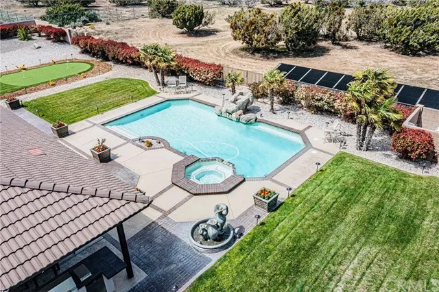 Welcome to your Dream Home! Stunning Single-Story POOL home in a prestigious and desirable Gated community in Oak Hills California. This beautiful home has 3,834 Sq ft of living space 4bed, 4 1/2 bath PLUS A BONUS ROOM, 4 attached car garage spaces and RV Access. The kitchen has Granite counter tops and nice cabinets, Hight ceiling with candle recessed lights, in the kitchen area you will find a nice Wine shelf cabinet and a bar to entertain those private parties. Fireplace in living room PLUS another fireplace in the master bedroom to enjoy those Romantic nights. WELCOME to your Dream back yard... Absolutely spectacular with a POOL AND JACUZZI COMBO! The patio cover has new ceiling fans and Electric heaters and a Big Screen TV and BBQ area. All back yard is completely upgraded with Planters, bricks, grass, a beautiful water fountain and Custom Putting Green. This stunning home is just a few minutes away from the 15 freeway and close to everytthing.