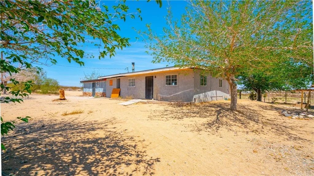 Location, Location and Location Rarely does an opportunity present itself to acquire the most enviable and exclusive property on 4.7 acres of land in Joshua Tree. Great location fifteen minutes from downtown Joshua Tree. Embrace the spirit of DIY with this fixer property occupying a peaceful street position, with fabulous 360 views of the surrounding mountains and desert scenery. This charming fixer home, with 1589 sq ft of space, features 3 roomy bedrooms and bright, open living spaces. This property includes 1 and ¾ bath, detached two car garages, original wood beams in the living room ceiling and a wood burning stove. There is plenty of potential for the savvy investor. Make this property your next desert oasis or income propert