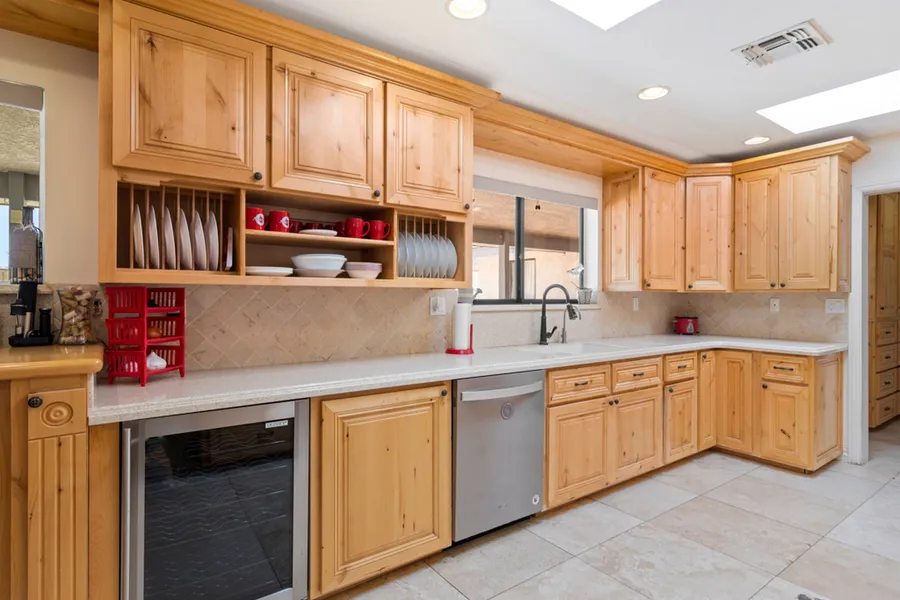 Talk about potential, this home packs a lot of punch for the price! Sitting on 2.5 acres between the two entrances to Joshua Tree National Park, this large home has a new HVAC system, new water heater, and owned solar panels. Other recent updates include paint, flooring, lighting, roof, an additional newer septic tank, remodeled kitchen, and remodeled master bathroom with bidet and a gorgeous, spa-worthy double shower. With three bedrooms and baths in the main house plus an attached guest house with kitchenette, bathroom, access to laundry and separate entry, this home could become a nice AirBnB or bring on a renter from the local military base. Other features include: an office that could become another bedroom or formal dining room, a craft/hobby room, paved parking for 7-8 cars plus two large garages for 4 more vehicles, toys, or an RV. The smaller garage (26'x48') has an existing sho...