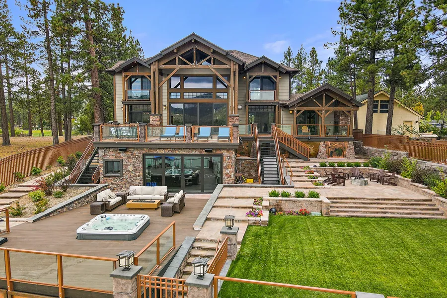Perhaps the most spectacular lakefront estate in Southern California, this home's warm, inviting rustic mountain architecture combined with beautiful lake views and almost of acre of deep-water lakefront land is what you've been searching for. There's room for everyone in the seven bedrooms, one of which boasts 4 custom-made queen-sized bunk beds for all the kids in your family. The spacious great room feels warm and inviting, and has something for everyone, from books and games to a pool table and a wet bar. Outside, you will find multi-level decks and patios surrounded by gorgeous landscaping, a spa overlooking the lake, a fully equipped gym with a stacking glass wall that opens to the lake, your very own gated park featuring a turf soccer field, basketball sport court, and custom-built treehouse, complete with electricity and its own water well. There are even newly installed solar pa...