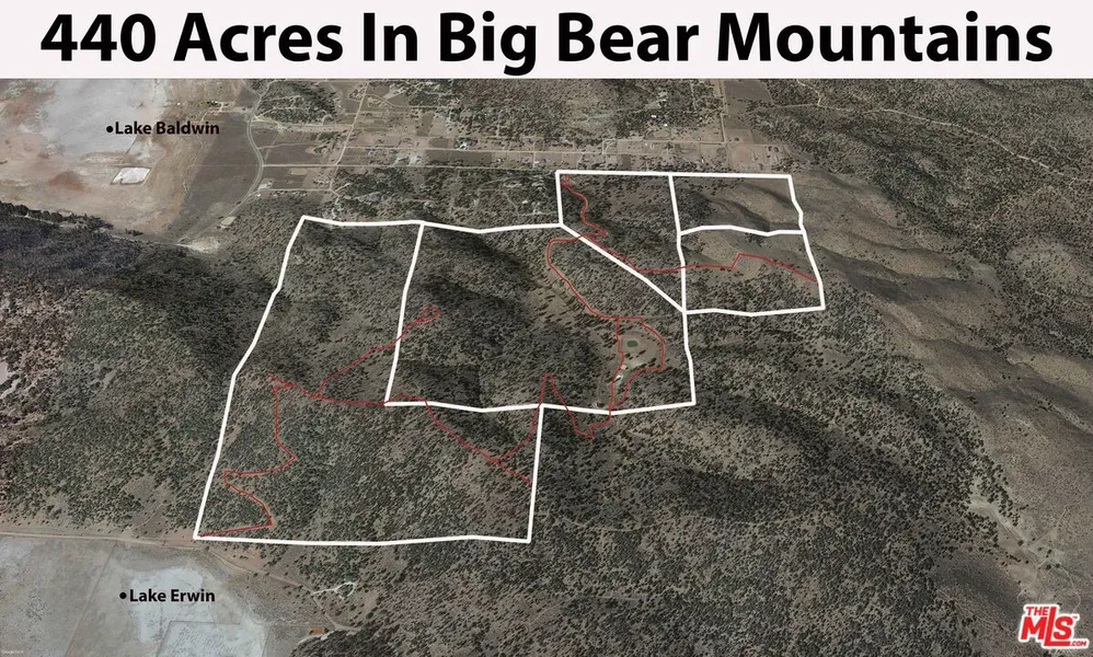 *See Virtual Tour for 360 Degree Tour of entire Property & Property Lines* The largest single owner property in Big Bear with 440 acres, this Landmark property has expansive mountain tops, beautiful views across the Big Bear area and surrounding lakes and can be developed into a paradise unlike any other. Located only 5-10 minutes from the center of Big Bear City and set between Lake Baldwin & Lake Erwin as well as surrounded by National Forrest, this park like property has incredible natural vegetation and wildlife throughout including burrows, eagles, hawks, black bears, deer and coyotes. Nearly all 440 acres are accessible through the manicured dirt road that is drivable by most SUV's and has continuous access from the north side by Lake Baldwin to the south side by Lake Erwin. The owner has done significant improvements along with the road including bringing electricity lines too the...
