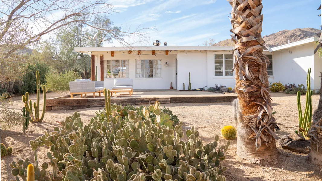 Welcome to this charming, original Joshua Tree home! Upon arrival, you are greeted by a seating area surrounded by beautiful cacti and landscaping. The native California home has modern and efficient upgrades to the kitchen and bathroom and will be delivered furnished. The exposed wood beams in the living room offer a warm cabin feel and you can see beautiful terrain from every window in the house. The property includes a grand workshop that's great for all the "Makers" out there. The neighboring parcel of land will be sold separately, but is available for purchase to create your own desert oasis. This property consistently rents via Airbnb and is a great investment. Come enjoy this peaceful Joshua Tree lifestyle!
