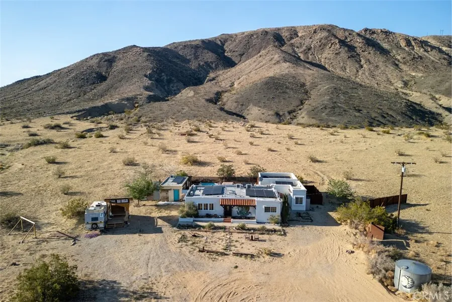 Welcome to your dream desert oasis! This stunning single-story home nestled on over 5 acres of picturesque Joshua Tree land offers the perfect blend of luxury and tranquility. Step into this recently remodeled 3 bedroom, 2 bathroom retreat and be greeted by modern elegance and Moroccan flair throughout. The home also offers a bonus room which can easily be converted into a 4th bedroom, plus a dedicated Zen room with a wood burning fireplace. The spacious layout is complemented by breathtaking mountain views visible from every angle. Imagine unwinding in the over-the-ground hot tub under the vast desert sky or marveling at the stars from the dedicated stargazing platform. With its secluded location, you'll enjoy the ultimate privacy and serenity. Conveniently located just a 15-minute drive from the renowned Joshua Tree National Park, adventure awaits right at your doorstep. Whether you're hiking among the iconic Joshua Trees or exploring the park's stunning rock formations, outdoor enthusiasts will delight in the endless possibilities. This turnkey property is not only a serene escape but also a savvy investment opportunity, currently operating as a successful Airbnb. Plus, with the upgraded main panel supporting the new solar system, you can enjoy eco-friendly living while reducing your carbon footprint. Don't miss your chance to own this desert paradise where every day feels like a vacation!