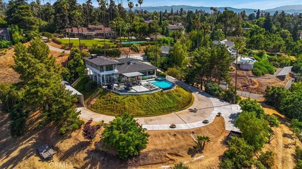 Call Eileen Didier for a showing at (909) 831-7398 for a private showing. Introducing a stunning home with breathtaking views! This completely updated property boasts a modern contemporary style that will captivate your senses. The outdoor space is a paradise with an infinity pool, spa and a convenient outdoor kitchen, perfect for entertaining guests or enjoying a peaceful evening. There are 2 bedrooms downstairs one is the primary bedroom, a living room and a viewing room to enjoy the amazing views. What sets this home apart is the upstairs apartment, complete with a kitchenette and full bath. This versatile space can serve as an additional bedroom, a separate living area, or accommodate extended family members such as teenagers, in-laws, or a caretaker. It could easily be a second Primary suite too! For car enthusiasts, there are two separate two-car garages, a covered carport that will house a 35 foot RV and the property has drive-through access across the expansive 1.5-acre property. Also, included is a storage shed. There is even room for an ADU (Accessory Dwelling Unit) if desired. The entire property is thoughtfully fenced for privacy and security. Schedule your appointment today to see this beautiful view home in South Redlands located on one of the most sought after streets in Redlands, located near the renowned downtown Redlands for its fine dining and shopping, making it an ideal choice for those with impeccable taste. Don't miss the opportunity to own this exquisitely designed masterpiece.