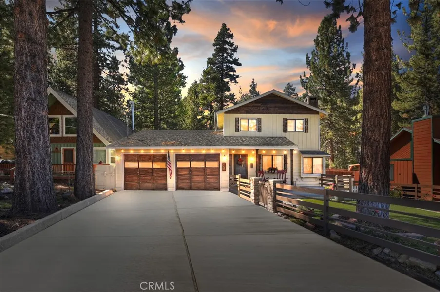 LOCATION IS THE KEY! Introducing a remarkable cabin home located in the desirable lower Moonridge area. You'll be just a stone's throw away from the golf course, restaurants, shops, the beautiful new zoo and the tram to Bear Mountain. Free tram services to the village and beyond are also a short distance from the front door. Situated on a completely level lot this property offers ample parking, and a fully fenced yard provides privacy. The front yard features sprinklers while the back yard has long-lasting rubber mulch ensuring easy upkeep. The front porch was rebuilt in 2019 with maintenance-free trex decking, while the newer trex patio off the main floor bedroom creates space for relaxation. The kitchen and living room feature an open-concept design. The LVP flooring adds a touch of elegance, complemented by the newer quartz countertops with a stunning tile backsplash extending from th...