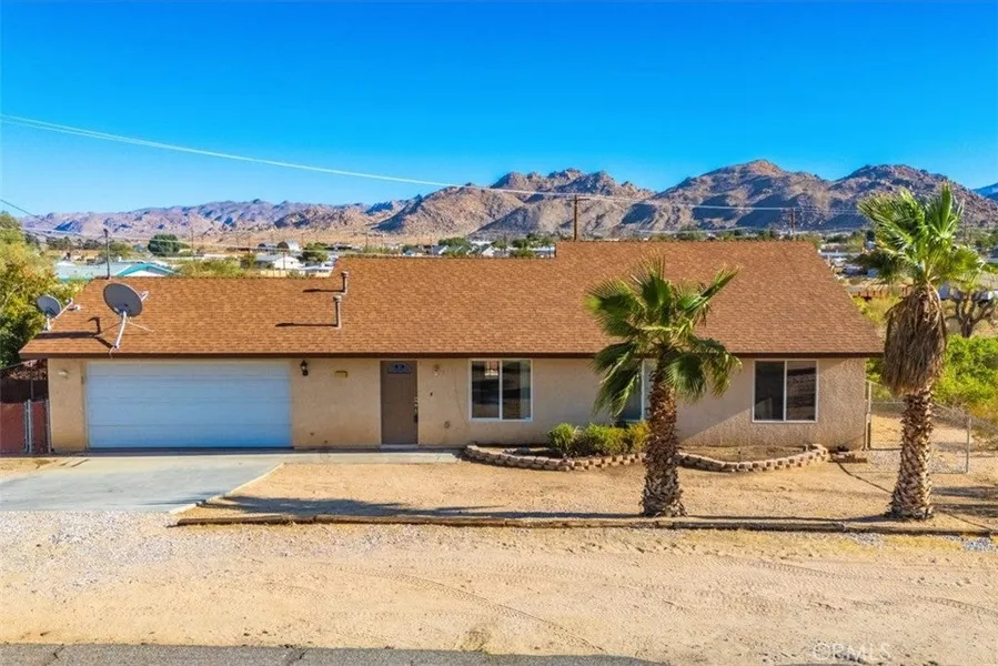 Super cute 3 bedroom, 2 bath home near Joshua Tree National Park. Sip your coffee on the back porch and enjoy the mountain view. This home has been nicely maintained and is ready for move-in. 2 car garage, fenced yard and nice covered back patio. The bedrooms all have ceiling fans and brand new carpet. Central heat and air for your comfort. Nicely appointed kitchen with dishwasher and microwave. Your washer and dryer can be installed in the hallway closet which is conveniently located near the bedrooms. Call today to view!