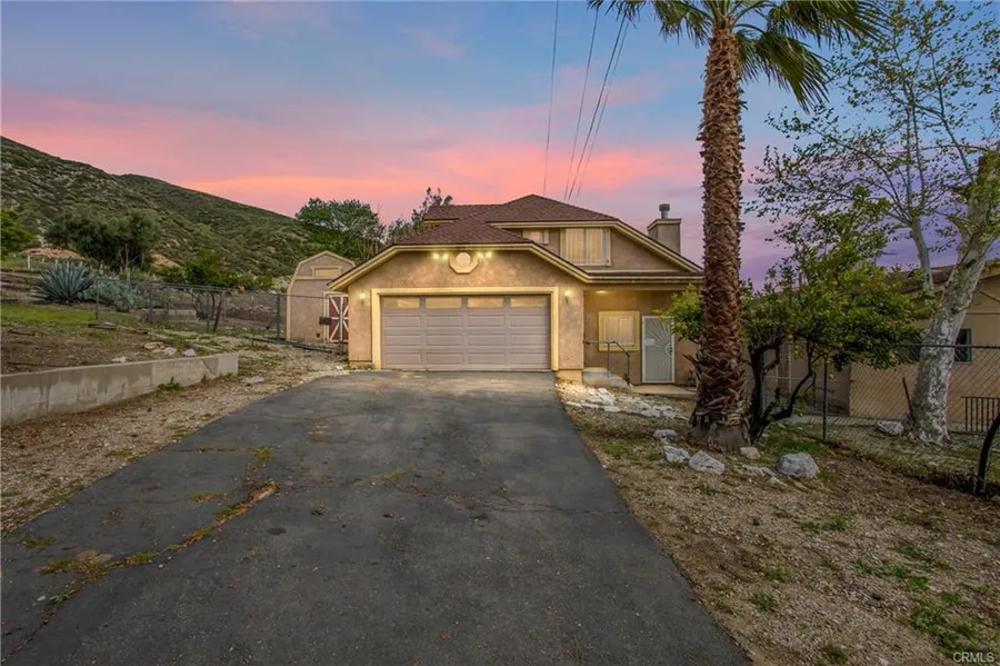 Endless Potential with Stunning Views! This unique property offers an incredible opportunity with over 3 acres of land & beautiful panoramic views in a peaceful rural setting. Perfect for buyers with vision, this home has the space and flexibility to create something truly special. The main house features 2 bedrooms & 1 bathroom, offering a convenient layout ready for your personal touch. The spacious detached garage provides room for more than 2 vehicles & includes an attached studio with a bathroom, plus a large attic that could potentially be converted into additional living space with the proper permits. Outside, you will find a pool that is currently in need of repair but it could become your own private oasis. The house water supply is assigned and shared with two neighboring properties, offering a reliable setup for rural living. Located near hiking trails, California State University San Bernardino, Glen Helen Amphitheater, and the scenic San Bernardino National Forest, this property is ideal for outdoor lovers and those seeking both space and convenience. The home is on a septic, and it will be sold "As Is. The seller will not make any repairs. While some updates & repairs are needed, the potential here is undeniable. A survey has been done on the property.