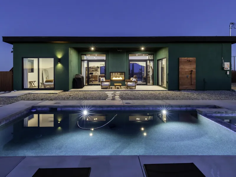 Discover the Unparalleled Allure of The G. O. A. T. at Goat Mountain - Your Exclusive High Desert Sanctuary set on a sprawling 4.75-acre estate, this home offers an unmatched level of seclusion, with no neighboring properties to disrupt your serene desert retreat and stunning beauty of the High Desert landscape, creating the ultimate sanctuary for relaxation and escape. This newer home is a true masterpiece offering luxury and comfort in an exclusive and tranquil setting with every detail meticulously designed for modern living. As you approach, a covered front porch warmly invites you into an open-concept floor plan effortlessly blends elegant style with functionality. The gourmet kitchen is a chef's dream, featuring stunning waterfall quartz countertops, ample storage, chic open shelving, and sophisticated decorative lighting. It flows seamlessly into the inviting family room, where a two-sided indoor/outdoor fireplace serves as the centerpiece. Expansive custom glass pivot doors frame the awe-inspiring views. Retreat to the private primary suite with luxurious bath featuring soaking tub, shower and double vanity. Additional two bedrooms it their own wing share a beautiful full bath. Relax on the rooftop deck where stargazing becomes a mesmerizing spectacle, where you can soak in the beauty of the night sky. Indulge in the luxurious embrace of the tailor-made pool and spa, or relax on the exquisitely designed back porch, where moments of tranquility await at every turn. Fully Owned Solar. 40' RV Pad with Water. EV Chargers. Currently Active Well Book Rental Property.