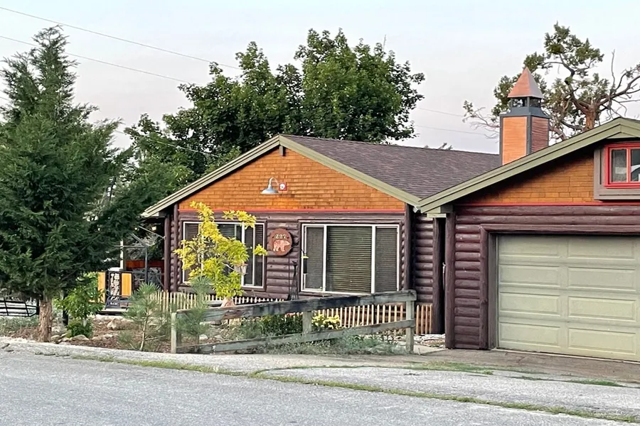 Welcome to the one-of-a-kind mountain getaway that you've been dreaming of! Situated on a huge corner lot, this warm and welcoming house will charm you at every turn. Featuring hand-welded metal work throughout, this home is truly unique and has an artistic touch. Enter through the mud room into the spacious living room, featuring lofted, beamed ceilings and a stone fireplace with a handmade screen, as well as a built in bookcase and a wet bar. The kitchen is updated with newer appliances, custom cabinetry, granite countertops, pull-out drawers in the pantry, and a special spice rack that gives you all your seasonings at your fingertips. This home also features durable maple engineered hardwood floors, a rarity these days. The primary suite has high ceilings, a walk-in closet, and even a claw-foot bathtub create your own spa-like experience at home. There's even a secret loft for the kid...