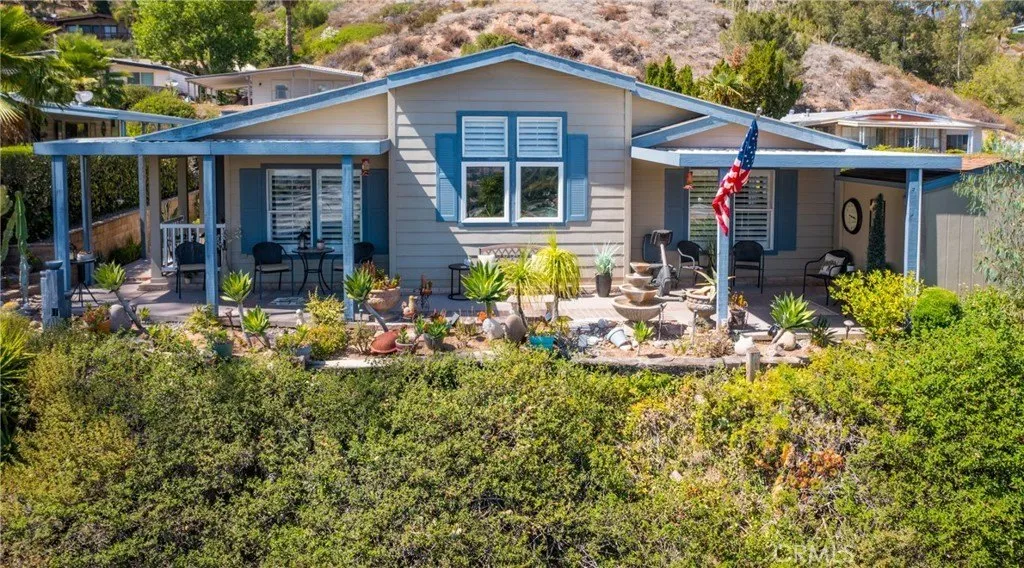 One of a kind, beautiful home in Mountain Shadows 55+ SENIOR park. OPEN CONCEPT kitchen in the middle of the extra large living room and large family room. Enjoy your coffee in the cute breakfast nook while enjoying the beautiful view of the valley. SHUTTERS grace all the windows, crown molding, extra large baseboards, wainscot on formal dining area. Walk in shower in Hall bathroom with custom shower doors. Guest room has large walk in closet for that extra storage. Third bedroom is an office with built in desks and cabinet. Primary bedroom has a very large and welcoming tub with separate shower. The walk-in closet is perfect. The laundry room has a 36 inch backdoor opening to the car port. The home was extended when new and the square footage was enlarged in the living area. A wall was removed to make the living area bigger. Wall can be put back if you need a 4th craft/bedroom. Extra insulation was added to the outside walls when new. The view from the front porch is breathtaking and the large shed adds storage space. Come see it today.