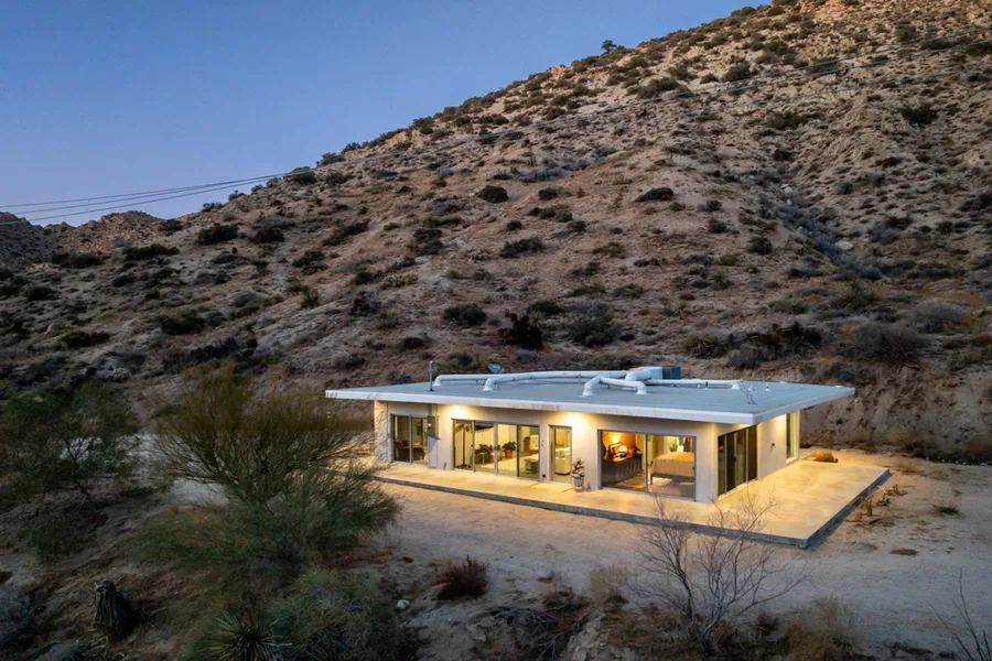 Perched on five pristine acres just five minutes from Pioneertown, this stunning mid-century gem is a true desert retreat. Surrounded by breathtaking natural landscapes, this home offers privacy, serenity, and spectacular panoramic views. Step inside to an airy, open-concept living space with sleek concrete floors and seamless indoor-outdoor flow. The modern kitchen, complete with counter seating, a stainless-steel chef's sink, and direct patio access, is perfect for entertaining- whether you're grilling under the stars or enjoying a quiet morning coffee. Wake up in the primary suite to sweeping views down the valley, where the twinkling lights of Yucca Valley meet the rugged beauty of Joshua Tree National Park. The en-suite bath is a spa-like sanctuary with dual sinks, dual shower heads, and a soaking tub positioned to capture breathtaking vistas. The second bedroom and bath offer equal...