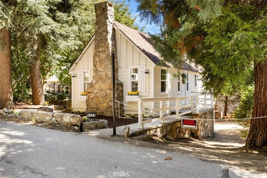 Step inside the high and exposed beamed living room of instantly feel at home. The love and detail poured into this cozy cabin will not go unnoticed. Nestled in the heart of Rimforest, this property offers the best of mountain living, quiet surroundings, nature and close to conveniences. Two bedrooms are located on the main floor and then two additional bedroom spaces are accessible through a small staircase. Below the cabin, there is a barn door to access plenty of storage space. Plenty of yard for gatherings. All furnishings are brand new and staged to remain in the property and convey with the sale. Do not miss out!