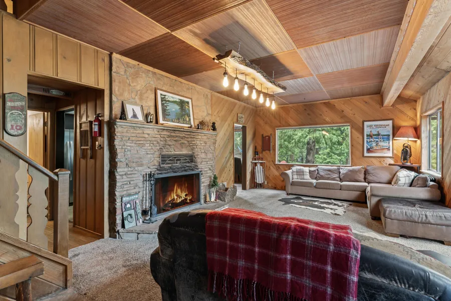 This mountain retreat is the kind of place people picture when they dream about a cozy cabin in the woods. Not only beautiful, it's also a proven winner with a solid short term rental history. Whether you're looking for a full-time home, a weekend escape, or a smart investment, this place checks all the boxes, and to top it off, it is being sold furnished. Step inside and you'll instantly feel at home. The living room is bright and open with gorgeous views from every window, a big stone fireplace, and a wraparound deck for that morning coffee or sunset wine. With 4 bedrooms and 3 updated bathrooms, there's plenty of space to spread out-and it comfortably sleeps up to 12, so bring the whole crew! There's a fun game room on the main floor with a wall-mounted TV, great for movie nights or rainy-day hangouts. But it's not all about big gathering, this home also nails the cozy vibes. There's a sweet little breakfast nook for two with picture-perfect lake views that'll make you want to linger just a little longer. You'll also love the practical perks: newer windows throughout, air conditioning, lake rights, and a super handy laundry room with washer, dryer, and a laundry chute. There is tons of storage in the build-up, so you've got space for all your gear, too. And the outdoor spaces includes the neighboring lot for continued privacy while enjoying the summer evenings, and even a bar area setup below the front deck. Whether you're hosting friends, renting it out, or sneaking away for some peace and quiet, this is a place you'll fall in love with-again and again.