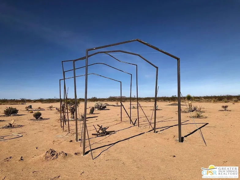 Owner offering to carry loan. Call for terms. Discover the perfect canvas for your desert dream home on this charming 5-acre plot in Joshua Tree. Featuring a PAID WATER METER and being on the waiting list for an electrical pole, this property ensures easy utility setup with the next-door neighbor already connected to electricity. The lot has been graded, and some landscaping is already done, with a gentle slope offering breathtaking eastern desert views. Essential documents, including a land survey and a perc test for a septic tank, are completed and available to the buyer. Included in the sale is a spool fence on one side and full chain link fencing around the lot with 2 drive in gates at each end. $10k steel sculpture on property, over 10+ tons of landscaping stone, wood pallets, 10+ large spool wheels, and everything else on the property at the time of sale will be included, as well a...