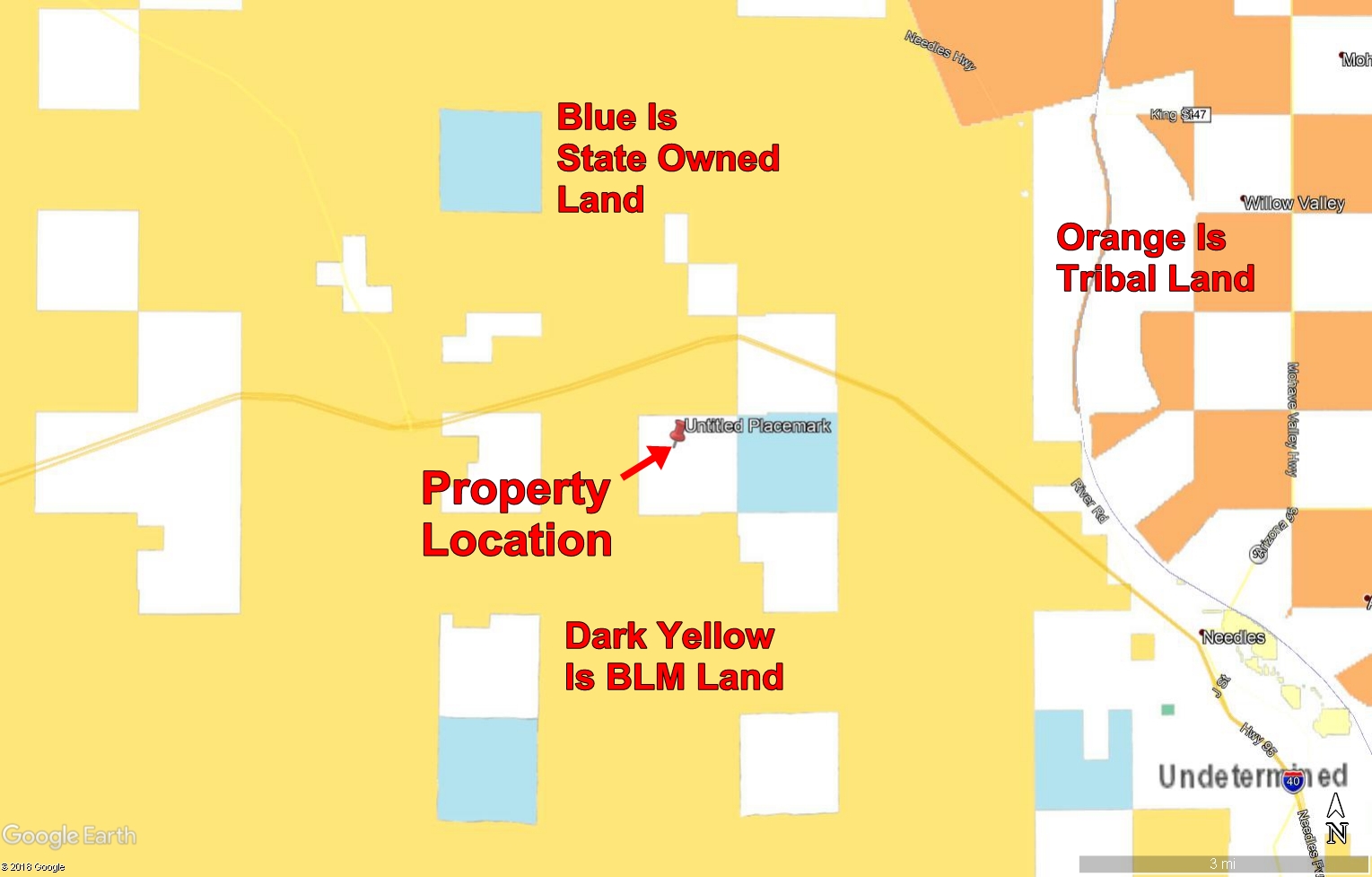 It is just a mile north of the Sacramento Mountains, making for a splendid southern view. Interstate Highway 40 is less than a mile north of the property. The Needles city boundary is just over 2 1/2 miles to the east.