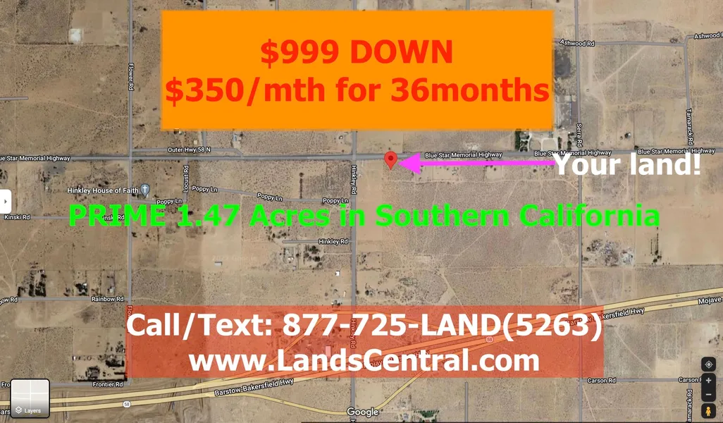 You can type these coordinates in Google Maps to find the land: 34.9213348049361, -117.187583675373
