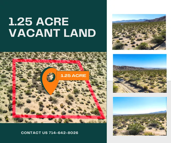 This 1.25 acres of vacant land is located between the cities of Joshua Tree and 29 Palms on HWY 62. Provides beautiful Desert views and Joshua Tree National Park Mountains. At night no city lights and unobstructed star gazing. Close to Copper Mountain College, Joshua Tree National Park that offers activities such as hiking, climbing, and scenic views. Don't miss out on this exceptional opportunity to own 1.25 acres of land. Move quickly to secure your spot in this beautiful California environment! Owner Financing is available! Please contact us for more information.