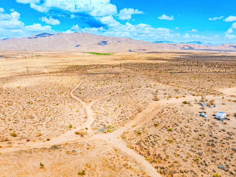Vegetation is typical for Apple Valley. Youll see scattered creosote, Joshua trees, small brush tracing the runoffs, and clusters of plants settled in dips where storm water gathers. The land mixes smoother level patches, shallow drainage lines, sandy rises, and old tire paths that help show how the area can be accessed or driven through.