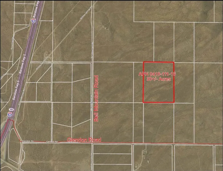 ~30 acres raw-vacant-gently undulating land east of I-15 and Bell Mountain Road, just north of Glendon Road, outside the northern boundary of Apple Valley town limits. CalTrans has agreed to allowing the Victorville to Las Vegas bullet train to use the I-15 median route. A rail station is planned near I-15 and Dale Evans Parkway. Get in on the "ground floor". Brightline indicates construction should begin this year (2020) with its first passengers moving in 2023.