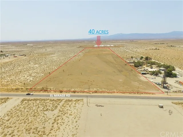 HUGE 40 ACRE LOT COMPLETELY FLAT RIGHT ON EL MIRAGE RD, CLOSE TO SHEEP CREEK RD. LAND SURVEY AVAILABLE. Zoning is RL (Rural Living). The RL (Rural Living) land use zoning district provides sites for rural, residential, retail and compatible commercial and industrial uses that may or may not require a permit (check with County of SB) as: agricultural crop production, Animal keeping, Crop production, horticulture, orchard, vineyard, nurseries, Livestock operations, Composting operations, Recycling facilities reverse vending machine, accessory, Agritourism enterprises, campgrounds, commercial indoor entertainment, conference, convention facilities, equestrian facilities, golf course, library, museum, art gallery, outdoor exhibit, Park, playground, Places of worship, Rural sports and recreation, Schools, college, university, Special Ed, training, Caretaker housing, , Mobile home park/manufactured home land-lease community, Produce stand, cemetery, child care, day care, commercial kennels, home occupation, licensed residential Care facility for 6 or fewer persons, Lodging, Public Safety facility, short term residential, transportation facilities, and MUCH MUCH MORE. All buyers must inquire with the County/city regarding Usage and what's allowed. Information provided by brokers (including lot drawings) are for information purposes only and are not guaranteed.