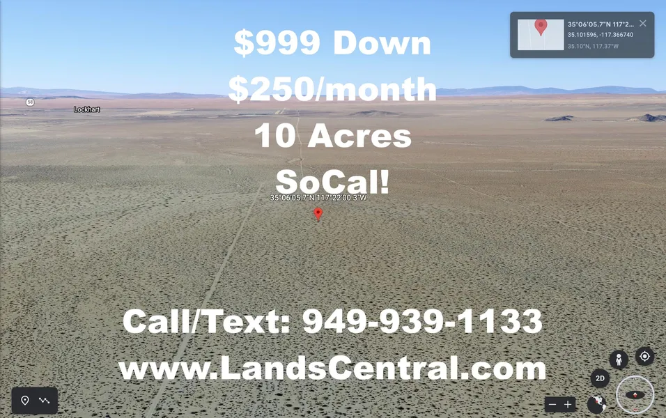 You can type these coordinates in Google Maps to find the land: 35.1015954819204, -117.36673951442