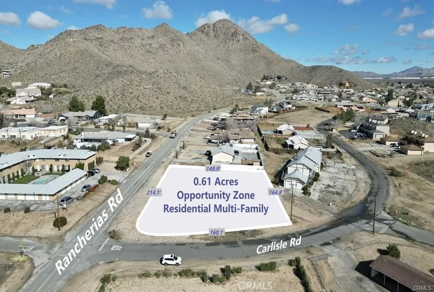 Looking for a multi-family investment in an opportunity zone in fast-growing Apple Valley? This .61-acre parcel is ideally located at the intersection of Carlisle Rd & Rancherias Rd. and has a great mountain and desert view! The area already has several quadplexes, single family homes , and apartment complex near. This corner lot is zoned for a building with up to 14 units! The land is clean and clear. All utilities (water, elec, gas & sewer) can be connected as soon as permits are approved. Buyer to verify zoning guidelines. LOCATION: Just 5 minutes from all the shopping & dining along Happy Trails Hwy, with Mojave Narrows Regional Park and Victorville about 10 minutes away. Property address is for marketing purposes only, not a real address. (Property does not have an assigned address.)
