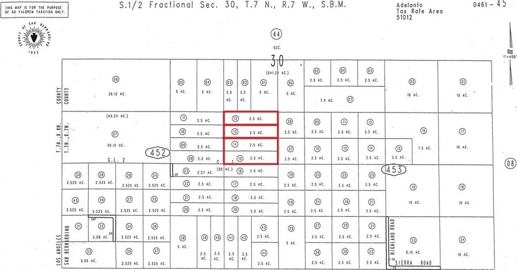 4 SEPARATE 2.5 ACRE LANDS, TOTAL OF 10 ACRES!! This land has already been subdivided with 4 separate parcels numbers: 0461-452-12, 13, 14, and 15. Motivated seller including all these 4 parcels for sale in 1 transaction. Located in El Mirage and Adelanto area near infamous El Mirage Dry Lake Bed. Excellent land to invest now then sell them separate and make money!! Opportunity knocking! Hurry to submit an offer today!!