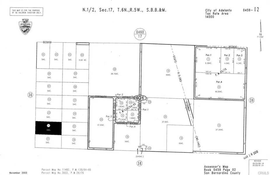 Land for sale in Adelanto, California, county of San Bernardino. Property is 4.8 acres and is a good price. This could be the ideal location for building a custom, ranch, or other rural developments since it provides a spacious area for your projects. Located in a growing area, the property is close to major highways and local amenities, making it a convenient and strategic investment. At night, you'll be mesmerized by the twinkling stars overhead as you relax in the tranquility of your own private oasis. Whether you're looking for a weekend getaway or a place to build your dream, this property offers endless possibilities. Conveniently located just west of US Highway 395 and just North of El Mirage Road. Don't miss out on this incredible opportunity. Parcel number is 0459 026 03 0000. Latitude and longitude coordinates are: 34.615278,-117.433019