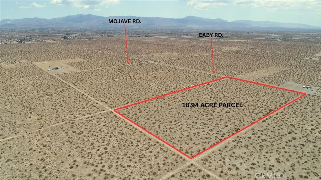This property is easy to find, easy access from Paved Sheep Creek Rd. go 1.8 mile east to Eaby Rd, then make a left and go 0.2 mile, you will be approximately on the south west corner of the property, Discover the potential of this flat and rectangular lot with approximately 18.94 acres offering a unique opportunity for developers, investors or those seeking a serene desert retreat and build your dream home. This exquisite property boasts breathtaking panoramic views of the desert landscape offering the opportunity to realize your vision of a dream home, with peaceful countryside living within easy reach of shopping centers and schools, all while conveniently located close to Palmdale Rd which is a main road. Property lines are Eaby Rd to the west, Schlitz Rd to the east and Lupin Rd to the south, very easy to subdivide, The High Desert is now the future home of the recently approved Hig...
