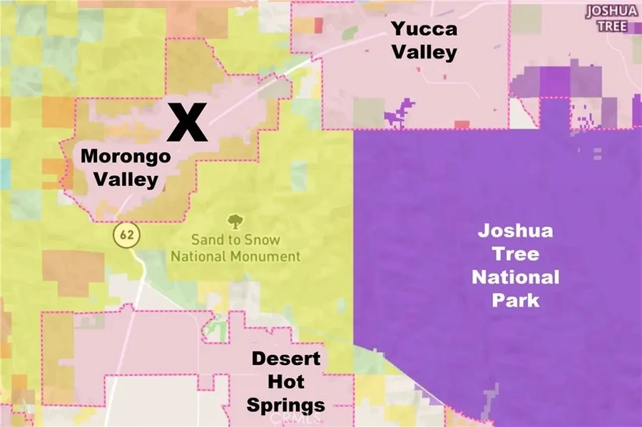 Flat two acres in a convenient location just 300 ft off of paved Hwy 62. Easy commute to the resort area of Palm Springs, the city of Riverside, and Joshua Tree. Electricity is available. Zoning is RL Rural Living, which allows for a tiny home on a permanent foundation, a single-family home, or a manufactured home. Mountain views!