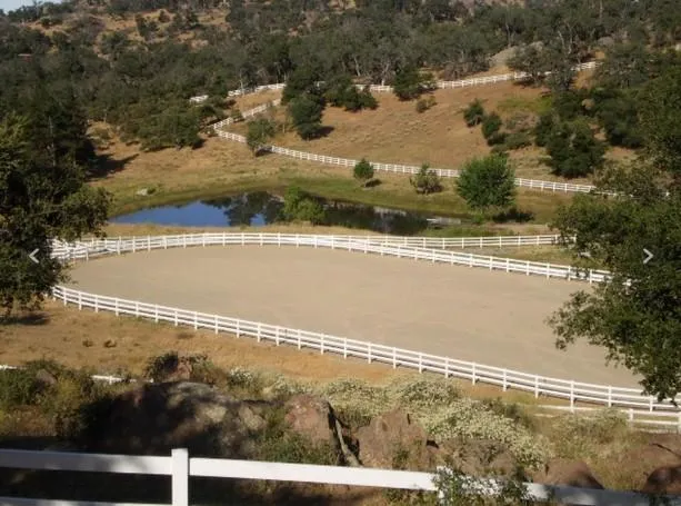 Enveloping and cross fencing the entire estate is nearly two miles of new white vinyl fencing, complete with a perimeter hot strap. Centered in a large open pasture area is a professional 125 arena. A 7 stall stable, versatile corrals, hay barn, and tack barn round out the first class equestrian facilities.