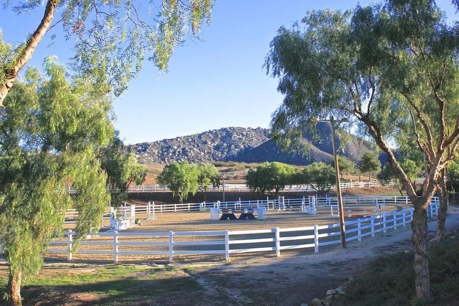 Peppertree Farms is a 30 acre equestrian complex including 80 indoor/outdoor horse enclosures, arenas for dressage, jumping and other disciplines, and many other equestrian amenities. Offering includes an upscale, custom and private main residence and 2,100 SF managers residence, all the equestrian improvements, plus an income producing horse boarding operation. Riders and horses enjoy manicured grounds and the feeling of nature. The adjacent 20 acre parcel (APN # 322-011-09-00) can also be purchased.