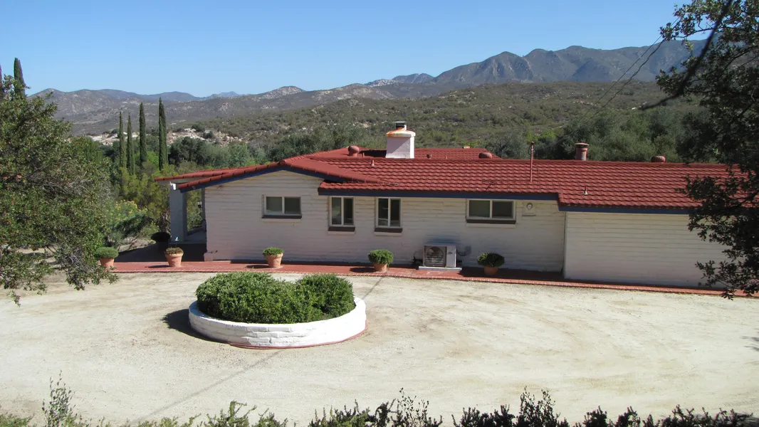 The electric gate opens to a circular driveway and introduces you to the appealing features of this well preserved 1958 Hacienda style ADOBE home on 1.37 acres of park like land. This well constructed 2 bedroom 2 bath home is framed by red brick walkways and boasts a large courtyard which overlooks the astounding beauty of the area's natural surroundings. There is also a large custom STUDIO APARTMENT with its own entrance, kitchenette, bathroom and fireplace.. This home is complete with wood floors, a custom stone hearth, an airtight wood burning stove, new windows, and a metal tile roof.