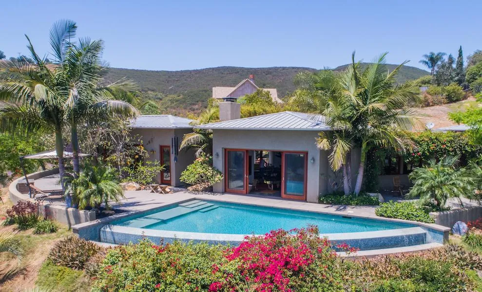 Professional kitchen with 6 burner Thermador stove. Sub-Zero see-through glass refrigerator with separate drawer freezer. Soapstone countertops in kitchen. Master bath has 2 separate and private his/hers bathrooms. Private infinity edge pool off the family room. Concrete floors. Oversized bedroom with fireplace. 3 patio areas for entertaining. Outdoor fireplace. Indoor laundry room.