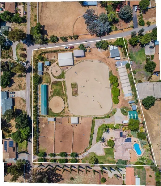 3.96 Useable Flat Acres with 3,335SF 4BD/ 4.5BA country home. Large gourmet kitchen with granite counters. 3 Fireplaces, Pool and Spa. Working Horse facility with 27 stalls, 220' X 130' Arena with Airfoot Footing, Producing Well, Solar and low Overhead. 4 Pastures with shade, large hay barn, tack room, wash racks and grooming PLUS a Caretaker's Cottage.